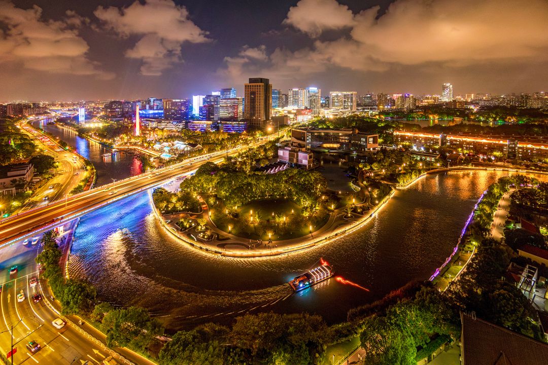 2、利用无人机(飞前一定要通过报备且不超范围)在苏州水面俯拍。