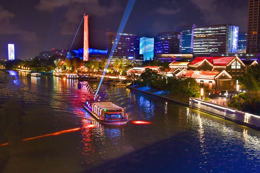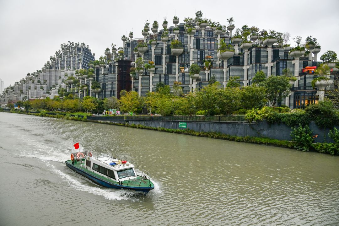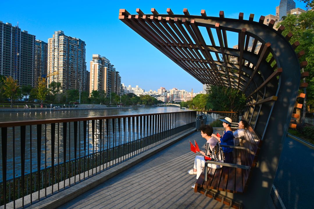 半马苏河公园和游船码头是不少人的心头好,尤其节假日有游船驶过时,画面瞬间生动起来。