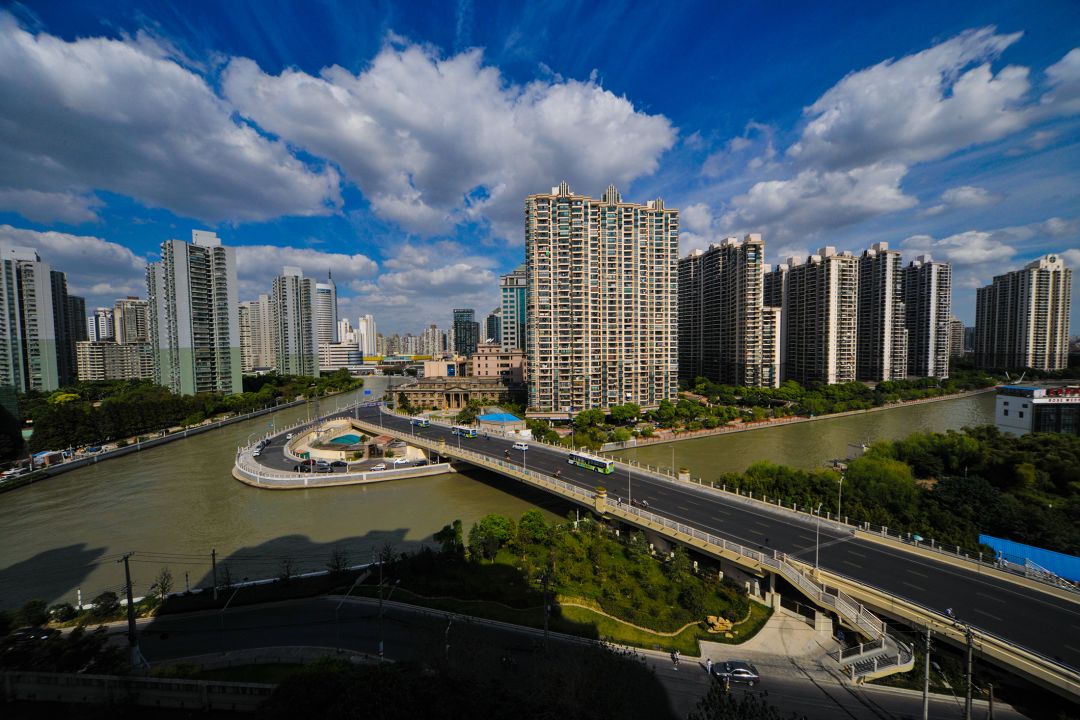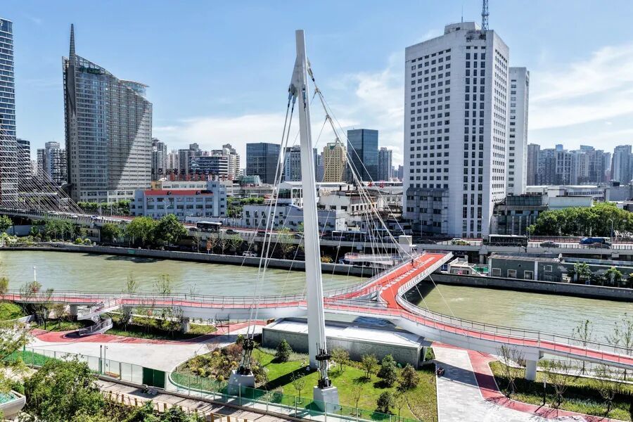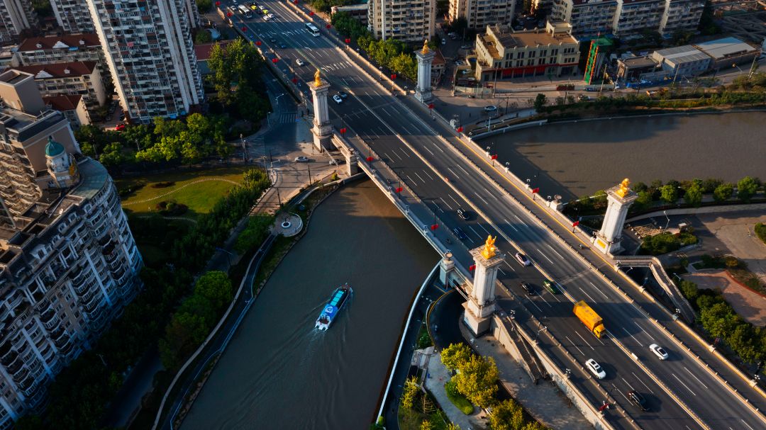 高空俯拍百合桥,能把其线条与苏州河的蜿蜒一同收纳。